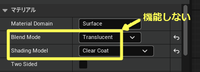 今までは、ここから例えば "Clear Coat" を選ぶと Opaque 専用となり 半透明モード (Translucent) を組み合わせられなかったです。(正確には選べるだけで実際には機能しない)