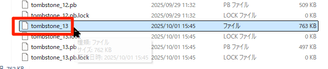 最新の「tombstone_##」の拡張子がないファイルをテキストエディタで開きます。